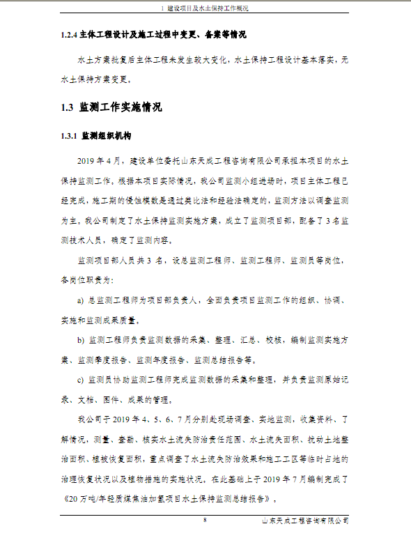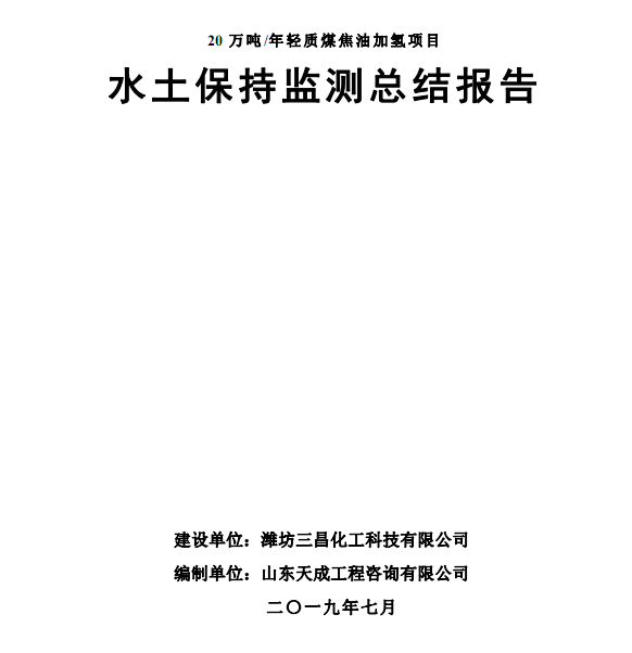 20万吨 年轻质煤焦油加氢项目水土保持监测总结报告