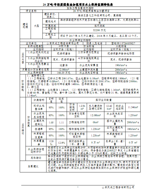 20万吨 年轻质煤焦油加氢项目水土保持监测总结报告 2019-9-4 本文被阅读 13947 次